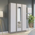 The Melody bedroom range features a modern range of furniture with stained grey oak and contrasting white gloss doors and drawer fronts.