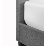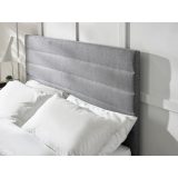 The Meridian bed frame is durable and timeless. Finished in a grey linen fabric with a distinctive horizontal tufted headboard and complemented with black feet.