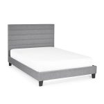 The Meridian bed frame is durable and timeless. Finished in a grey linen fabric with a distinctive horizontal tufted headboard and complemented with black feet.